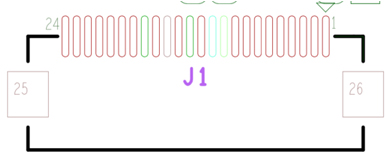 The MY-CAM012B camera module connects to the OV5640 sensor using its J1 connector via a 24-pin flexible printed circuit (FPC) connector. The J2 connector enables parallel DVP CSI interface connectivity through a 30-pin FPC connector.